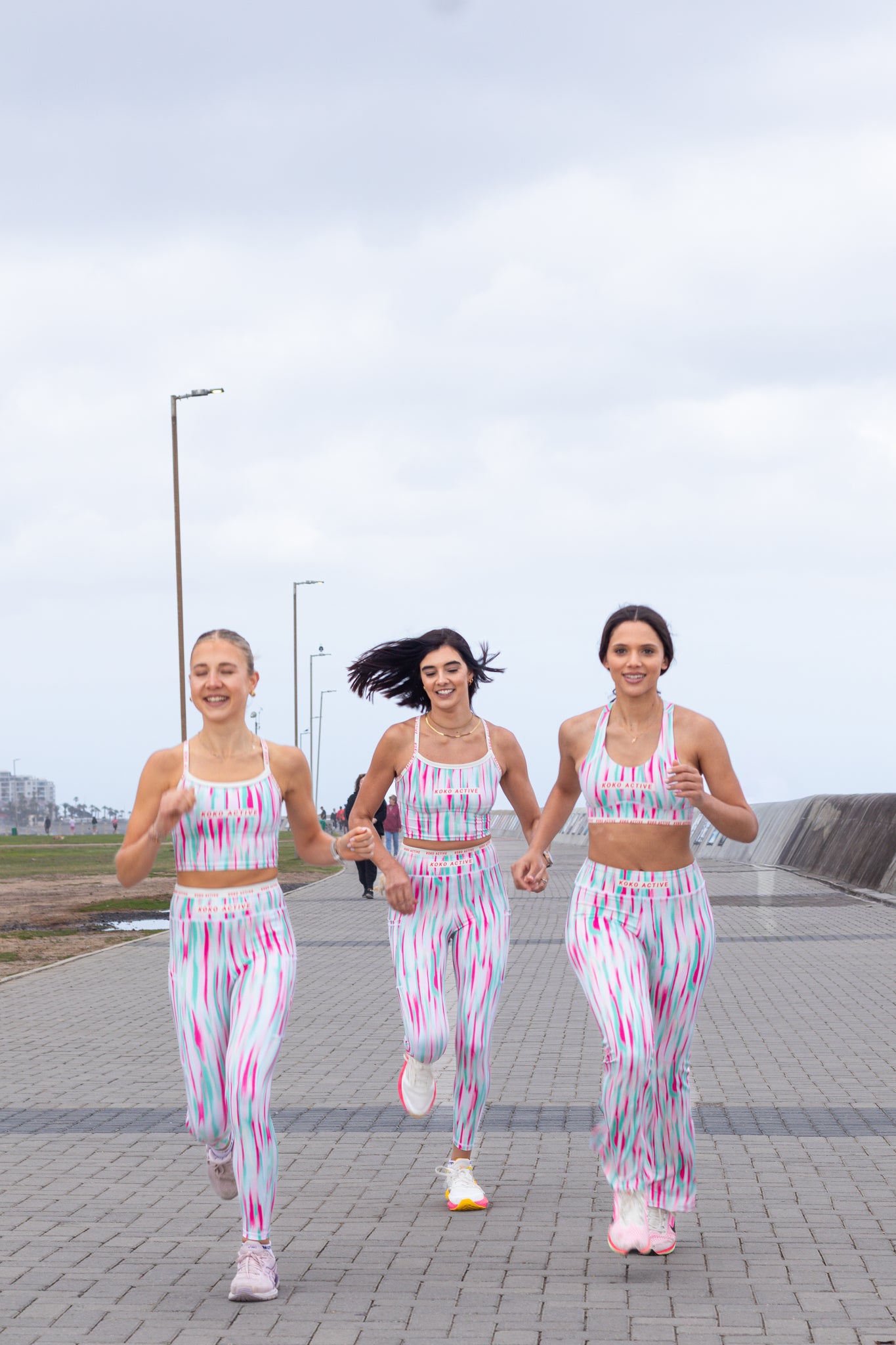 Our activewear pieces are made from premium fabrications imported from Brazil. All prints are hand illustrated by our founder, Courtney Visser and are then sublimated onto our fabrics.